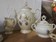 Elfenbein-Garnitur Golddruck (blaue Blüten)