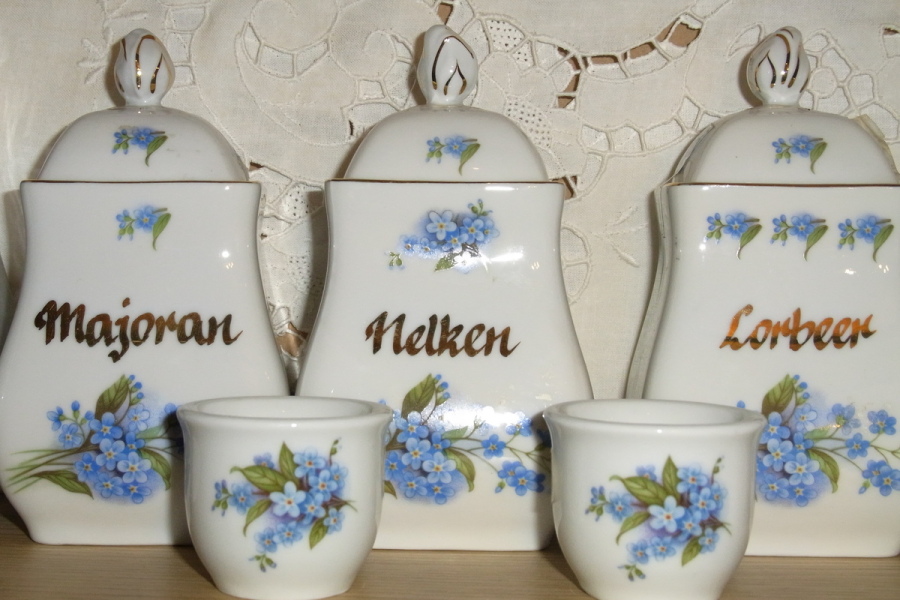Küchendosen, Dekor Vergissmeinnicht, mit Text, nur im Set - 7tlg.